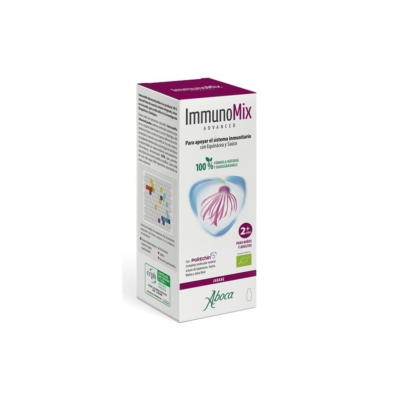 ImmunoMix Advanced jarabe apoya el sistema inmunitario gracias a la presencia de Equinácea y Saúco, no solo durante el período invernal, sino en todos los casos en los que este se encuentra debilitado.
