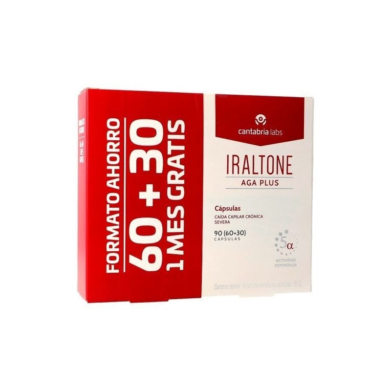 Iraltone aga plus es un complemento alimenticio en formato de cápsulas que contribuye a reducir la caída capilar crónica severa con un componente hormonal, así como a la recuperación de la densidad capilar.